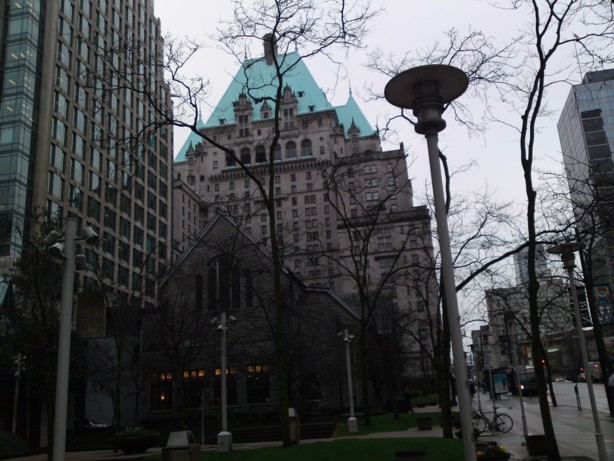 ダウンタウンにある美しい建物の由緒あるホテル・バンクーバ。