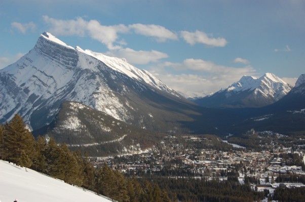 北側のノルケイ山の中腹に登ると、ランドル山の麓のバンフの町が見下ろせる。