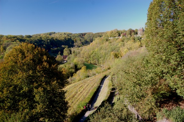 城壁から外を眺めると、黄葉した木々におおわれた平原が続いている。