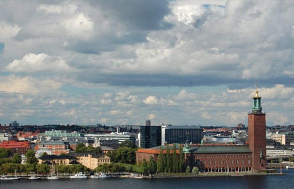 Famous city hall, where Nobel Prizes are awarded, was seen from other side of the sea.