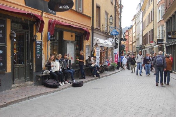 8月9日、ストックホルム旧市街ガムラスタンへでかける。王宮を見物して、旧市街を歩く。土産物屋やカフェーが並んでいる。