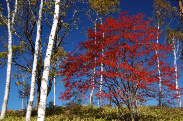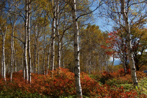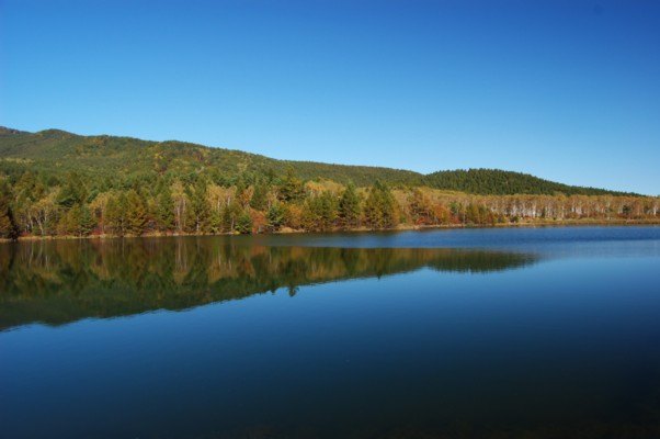 I visited Yachiho which is locate opposite side of Yatugatake from our house with my friends who visited our house. Leaves of the forest around Yachiho lake were beginning to change their colors from green to red or yellow..