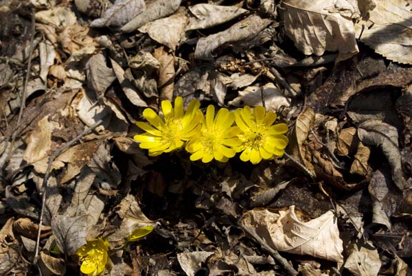 昼間の気温も10度近くになり、尖石公園では福寿草が咲き始めた。