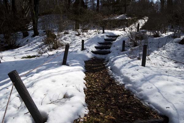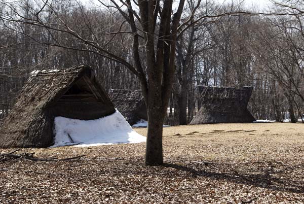 日当たりの良い縄文遺跡では、ほとんど雪が溶けてきた。