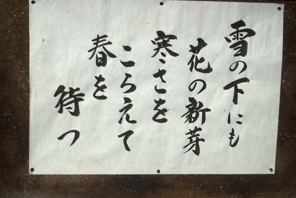 山門に貼られた短歌が地元の人の気持ちを良く表している。