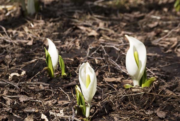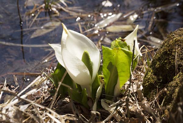 暖かい日差しが降り注ぐ日曜日、原村の八ヶ岳自然園へ出かける。園内の湿地では、水芭蕉が白い芽を出し始めた。