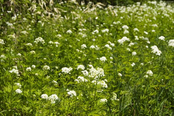 草叢では、コンロンソウが一斉に白い花を開き始めた。