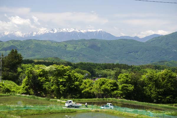 遠く中央アルプスを望む高原では、森でカッコウが鳴き、山麓の田んぼにも水が入り、田植えが始まった。