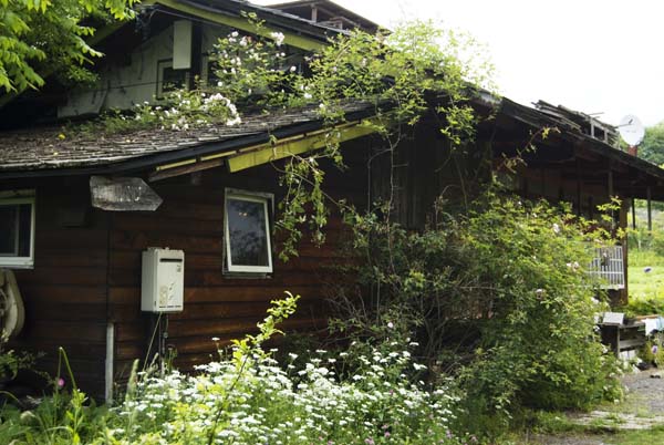 ご近所の庭では、バラやマーガレットが白い花を見せている。