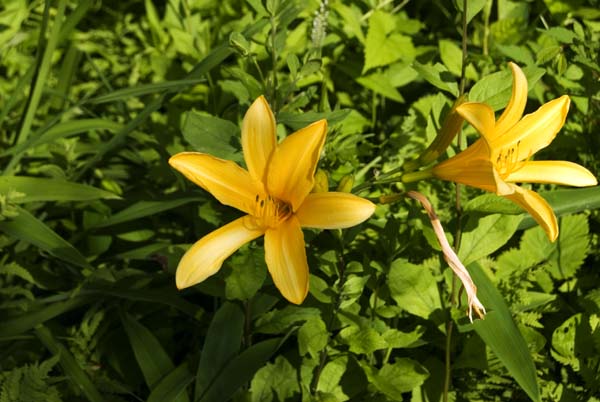 原村の八ヶ岳自然園では、ニッコウキスゲが黄色い鮮やかな花を付け始めた。