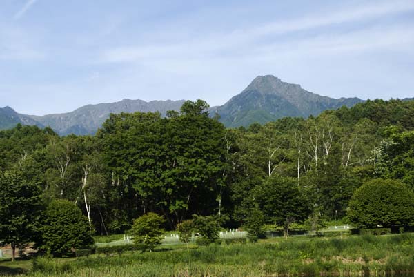 マルヤチ湖から見上げる八ヶ岳は残雪も消え、すっかり夏の姿となった。