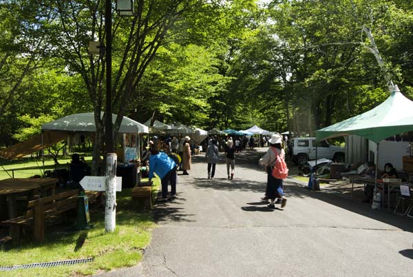 原村の八ヶ岳自然園では、クラフト市が始まった。遊歩道の木陰には、アクセサリーや木工などの店が出ている。