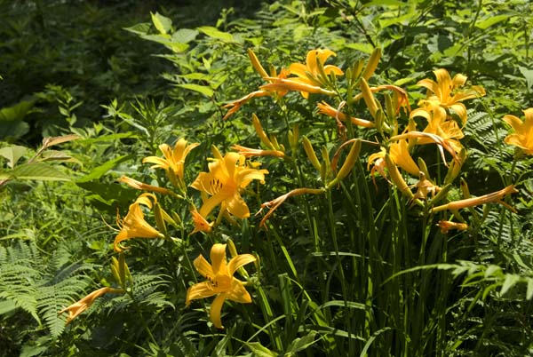 園内では、夏の草花が咲き誇っている。ニッコウキスゲの鮮やかな黄色。