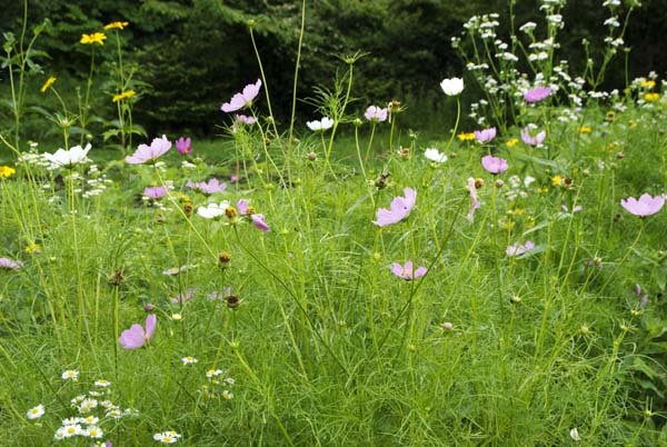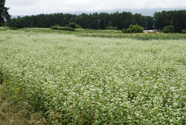 長雨が続く今日この頃、周りの畑では、白いそばの花が畑一面に咲き始めた。