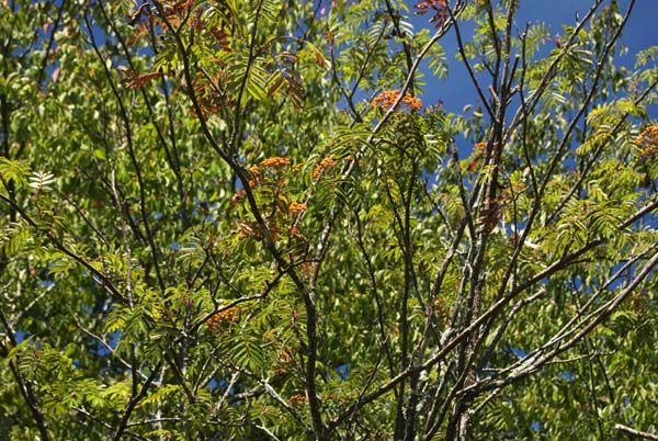 ナナカマドは、青空の下、赤い実を付けている。