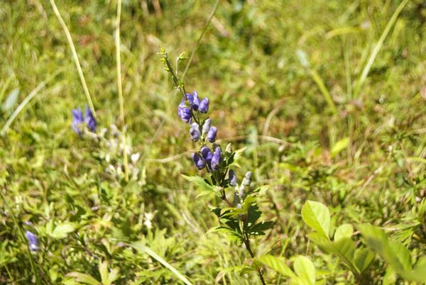 紫色のトリカブトが草原のあちらこちらで咲いている。