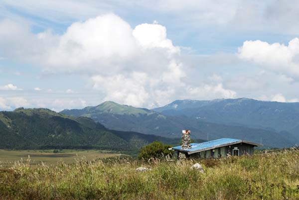 八島湿原を見下ろす丘には、古い山小屋が佇んでいる。