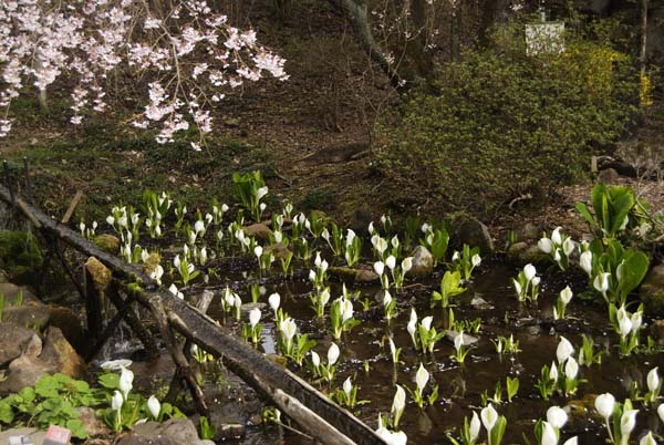 寺の庭の水芭蕉も白い芽を出している。
