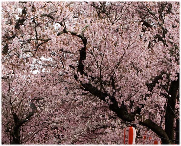 桜前線は、茅野市街地から八ヶ岳山麓を駆け登り、標高1200メートルに到達し、原村の深叢寺の境内の桜が満開となった。