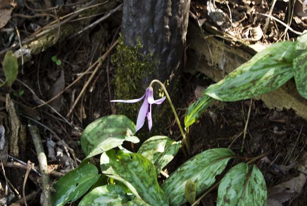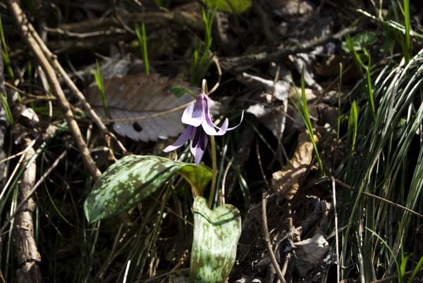 茅野市郊外の里山では、カタクリが可愛らしい花を見せ始めた。