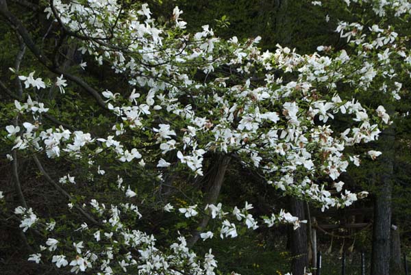 春を告げるコブシの白い花も鮮やかである。