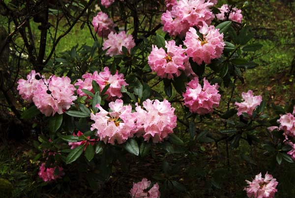 家の周りでは、シャクナゲがピンク色の大きな花を咲かせ始めた。