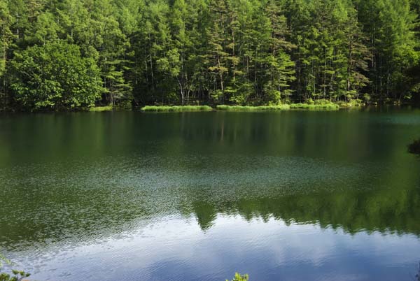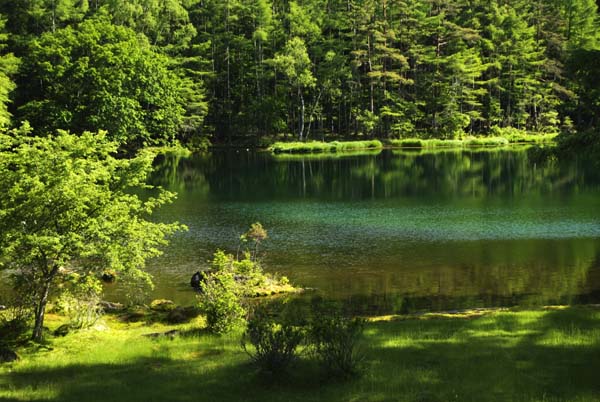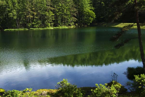 に出かける。湖岸の緑が深く、湖面は青く波打っている。