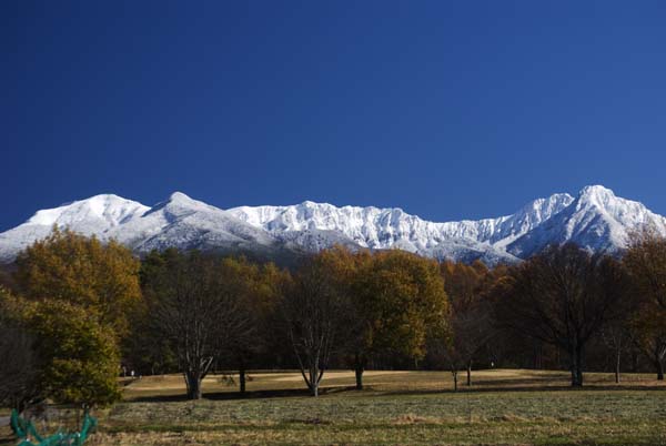 南の権現岳も青空のもと、美しく輝いている。