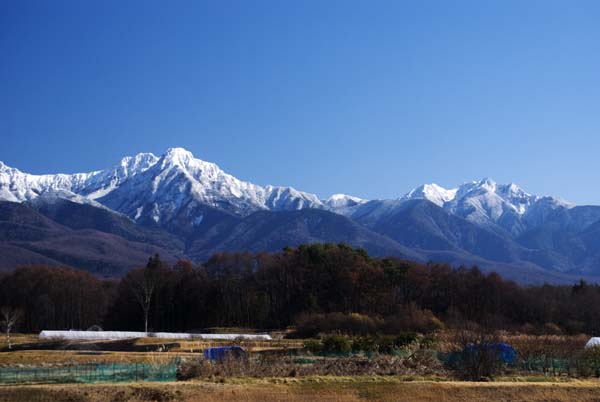 寒さが厳しい今日この頃、まだ、山麓には積雪がない。しかし、見上げる八ヶ岳連峰は、白く輝いている。