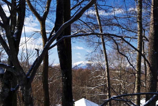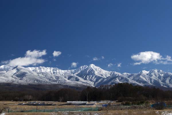 久しぶりに寒波がやって来て、八ヶ岳連峰に新雪が積もった。山麓には、余り雪がない。