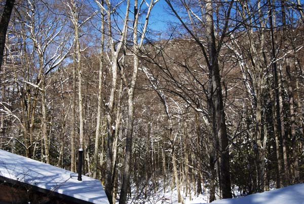 庭先の森も雪に包まれている。