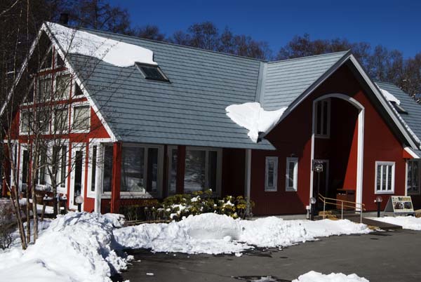 この所の寒波でいずみ平も雪に包まれた。しかし、気温が高く、管理事務所の屋根の雪も溶け出した。