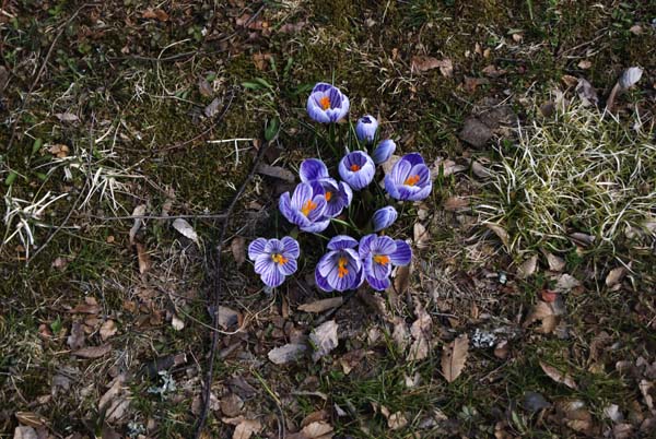 ご近所では、クロッカスも可愛らしい花を広げている。