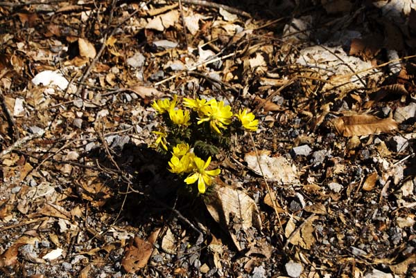 雪解けの時から咲き始めた福寿草は、まだ、元気に花を見せている。