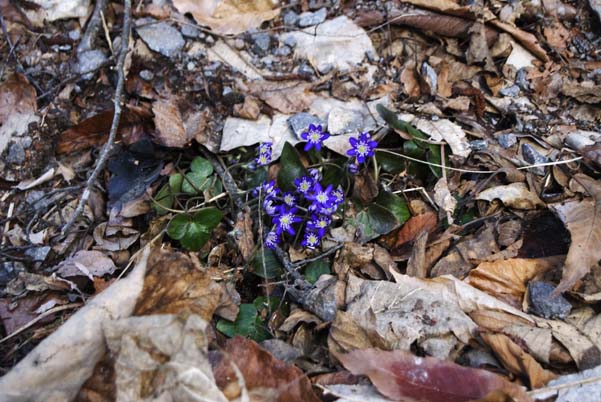 3月末になり、昼間の気温は15度を超え、家の周りでは、早春の山野草が咲き始めた。枯れ草の間からは、雪割草の鮮やかな青色の花が咲き始めた。