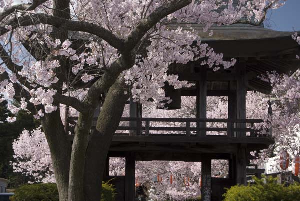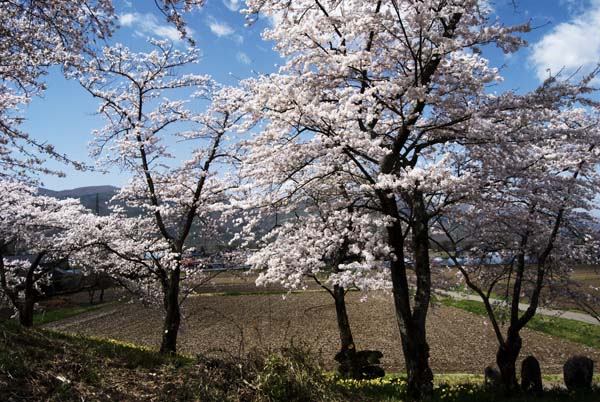 暖かい春の日差しと共に桜前線は八ヶ岳の山麓を駆け上り、標高1000メートルを超え、原村の桜が一斉に咲き始めた。深叢寺の境内では、エドヒガンザクラが満開となっている。