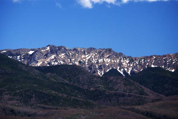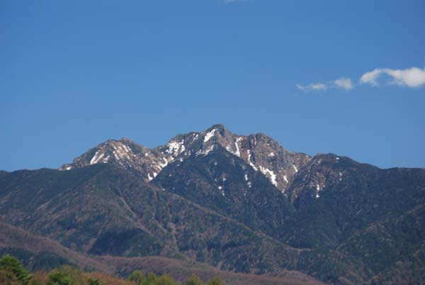見上げる八ヶ岳の権現岳も、谷筋に残雪を残すだけとなった。