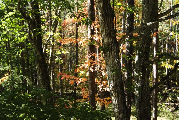 秋雨は、紅葉した葉を一気に落とし始める。